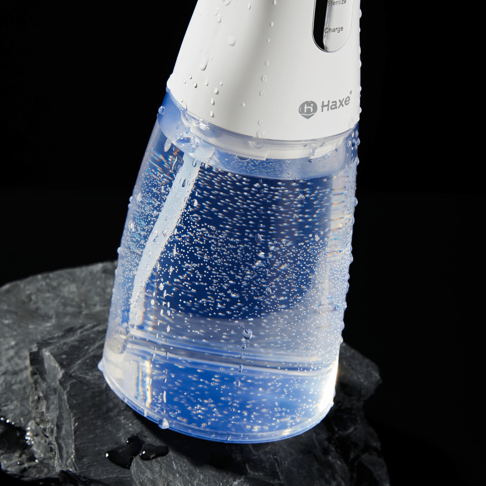 Prawdziwa higiena zaczyna się tam, gdzie kończy się widoczność. Irygator do zębów Haxe Magno dba o czystość nie tylko podczas pracy, ale także pomiędzy użyciami. Wbudowana lampa UV dezynfekuje zbiornik na wodę, a jeśli włożysz do niej końcówki — również one zostają dokładnie zdezynfekowane.