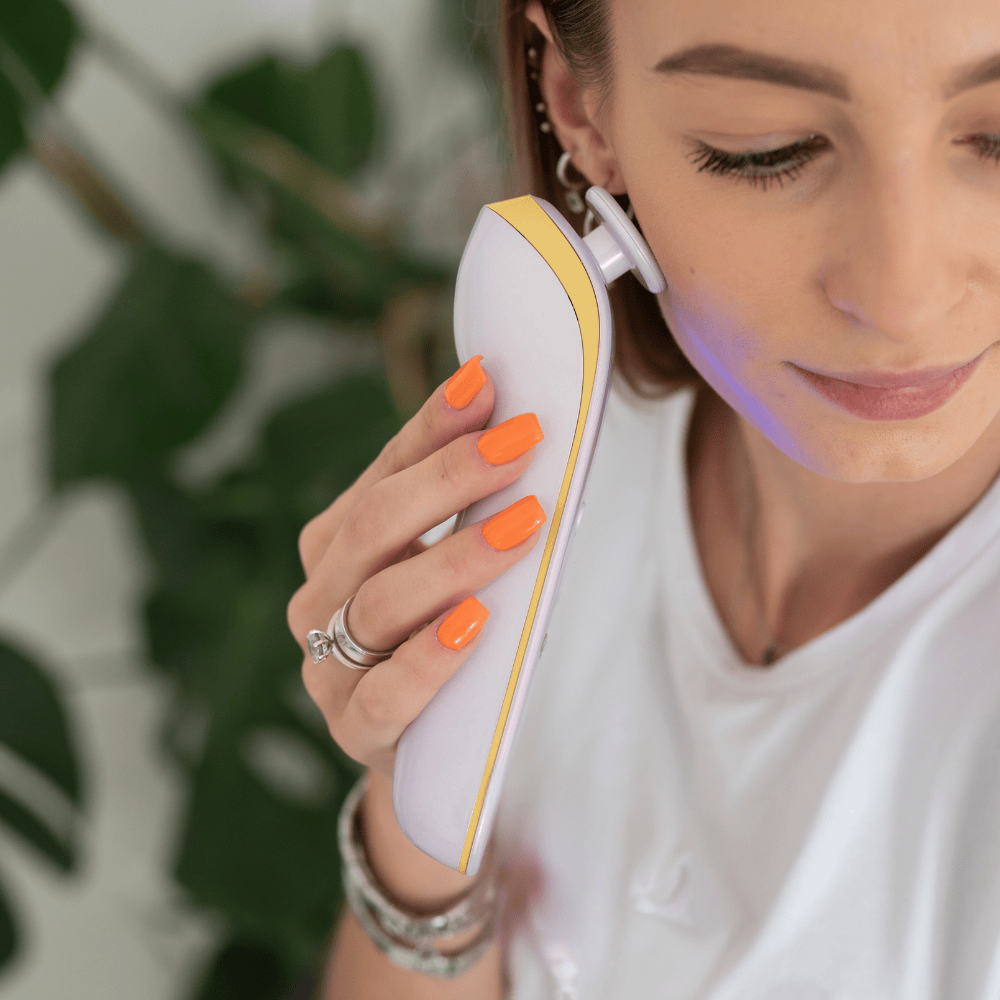 Mikrowyładowania plazmowe w masażerze Haxe Velissa delikatnie aktywują powierzchnię skóry, ułatwiając przenikanie składników odżywczych w głąb naskórka.